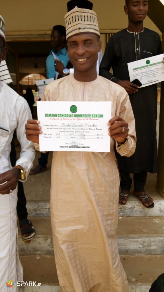 Like every other politicians, Barade was able to seduce, romanceDanfodites with his prodigious Campaign promises: he promised to make Danfodiyo an exotic University; he diffused the air with his enthralling strategic plan to address the problem of  insecurity, accommodation challenges, lack of  social amenities amongst other student-centred projects.