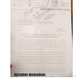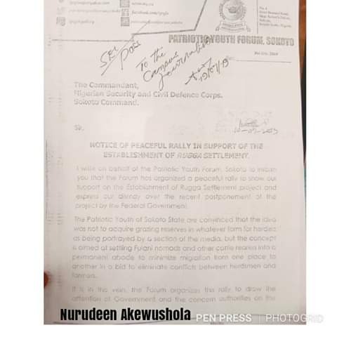 The letter of acknowledgement written by the forum to the Nigeria Security and Civil Defence Corps Sokoto Command also indicated that the peaceful rally was organized by the Sokoto State Patriotic Youth Forum.