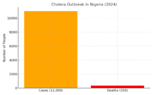 In 2024 alone, the World Health Organization (WHO)‘s data shows that Nigeria witnessed the most devastating records of a cholera outbreak with around 11,000 suspected cases and 359 deaths across 36 states.
