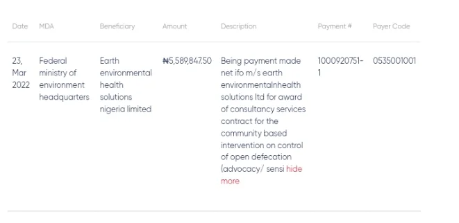 The Nigerian government went on to spend on open defecation twice in 2024. In May 2024, a sum of N32,900,102.21 was paid to Nexvile Energy Logistics Limited for the award of a contract for community-based intervention on control of open defecation in Nigeria.