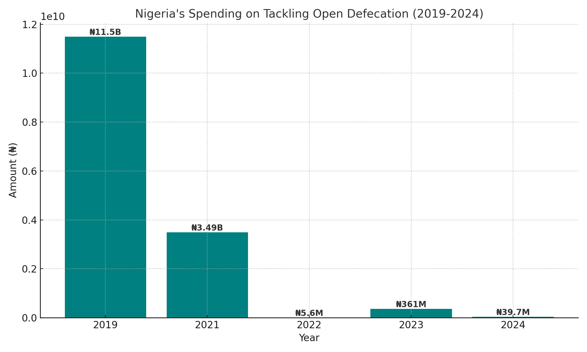 Chart showing Nigeria’s Spending on Tackling Open Defecation (2019-2024) // Dauda Musbau
